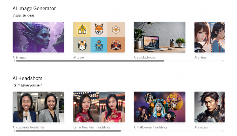 Provides writing and content tools alongside image generation (e.g., copywriting support).