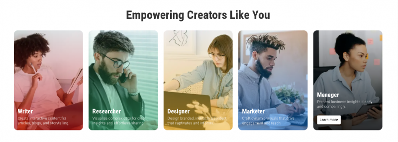 The intuitive drag-and-drop interface combined with AI guidance reduces complexity and speeds up content creation. Users can produce polished, interactive visuals without advanced technical or design knowledge.