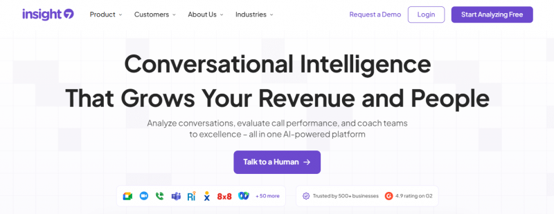 Insight7 automatically analyzes customer experience, sales, and research calls to extract insights that improve revenue, quality, and coaching outcomes. The platform processes conversation data from multiple sources—including Salesforce, Gong, Slack, and Hubspot—to identify themes, pain points, and behavioral patterns. It converts qualitative feedback into actionable visual formats such as reports, dashboards, journey maps, and mind maps. Beyond call analysis, Insight7 includes AI-powered roleplay simulations with dynamic personas for on-demand communication practice, paired with automated skill evaluation across empathy, active listening, questioning technique, tone, and clarity.