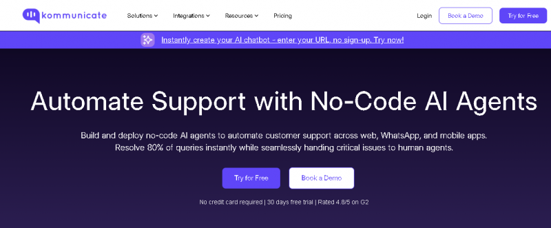 Kommunicate is a conversational customer support platform designed to help businesses automate and manage customer interactions across websites, mobile apps, and messaging channels. It combines AI-powered chatbots with human live chat, allowing teams to handle routine queries automatically while routing complex conversations to agents. Kommunicate is built for companies that want faster response times, reduced support workload, and centralized communication without replacing human support completely. The platform is commonly used by SaaS companies, startups, and service-based businesses that need scalable customer support.