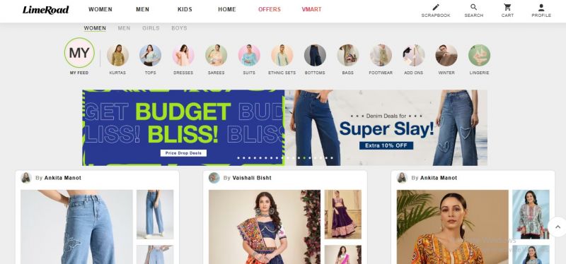 LimeRoad is an Indian fashion & lifestyle marketplace owned by V-Mart Retail, offering a wide range of clothing, accessories, footwear, and home & décor items. It doubles as a platform for style discovery: users can curate looks via their “Scrapbook”, get recommendations, and shop from a large catalogue under frequent deals. Based in Gurugram, Haryana, it serves users across India