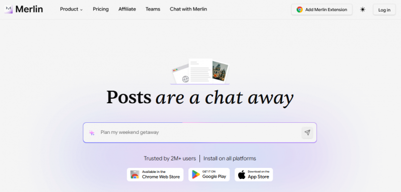 Merlin operates as a Chrome extension and web app that accesses AI models including ChatGPT, GPT 4, Claude, Deepseek V3, Opus, Llama, and Mistral. It generates responses on Google Search, provides summaries for YouTube videos, blogs, and documents such as PDFs or PPTs, and creates social media posts plus replies on LinkedIn, Twitter, and Gmail. The tool translates into more than twenty-five languages. It integrates with sites like Twitter (X), LinkedIn, YouTube, and Gmail through dedicated buttons. Available across web, Chrome extension, iOS, and Android with synced history and custom prompts.