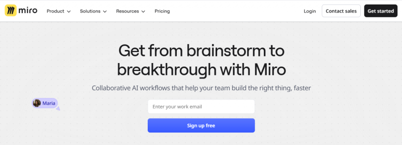 Miro provides a visual workspace for innovation. It enables visualization of content and data such as documents, designs, survey results, videos, and live dashboards in one place. The platform supports workflows from ideation to launch, including diagramming, wireframing, brainstorming, journey mapping, and product planning. AI features like Flows automate tasks such as turning brainstorms into action plans or generating project briefs from notes. Sidekicks assists in generating perspectives and synthesizing information across sources. The intelligent canvas handles drag-and-drop content, visual connections, and zooming between strategy and details. It integrates with 160+ apps including Jira, Figma, and Slack.