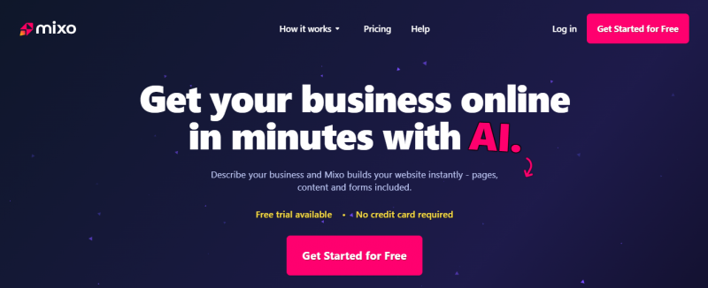 Mixo generates websites in seconds from a brief business description. Users enter details to create landing pages that collect subscribers without code or design work. The platform provides a no-code editor for modifying text, images, layouts, and brand elements like logos and colors. Sites include built-in email waiting lists for validating ideas, gathering insights via forms or surveys, and pre-launching products. Features cover custom domains, SEO optimization, GDPR compliance, managed hosting on a global network, mobile-responsive design, and integrations with tools like Google Analytics.