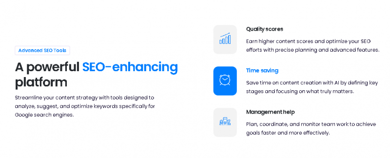 Focuses on SEO‑driven content, helping you write with optimized relevance and structure