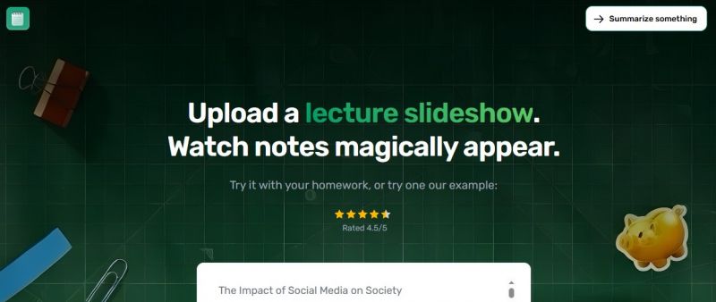 Notedly.ai generates notes from uploaded reading materials such as textbook chapters, news articles, or research papers. Users upload documents or paste text, select note style, and receive summaries in seconds. The tool processes content into clean bullet points with key takeaways. It offers one-click summaries and AI chat on webpages via browser extension. Example summaries appear for news articles, academic papers, or textbook chapters. First use requires only an email without account creation.