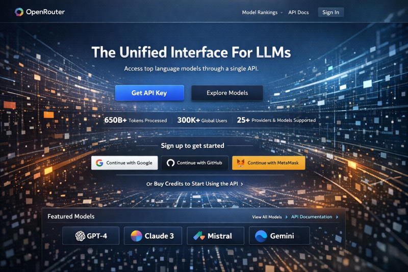 OpenRouter provides developers and businesses with a single API endpoint to access a wide range of AI language models from multiple providers. Instead of managing separate integrations and API keys, users can route requests through one interface. The platform supports cost and performance optimization through model selection and fallback routing. Its credit based pricing model allows flexible usage for both experimentation and production environments.