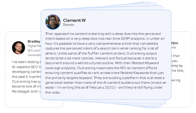 Outranking is well suited for SEO teams, content marketers, agencies, and growing businesses. It supports blog creation, landing pages, product content, and long-form articles where structured SEO workflows and scalability are important.