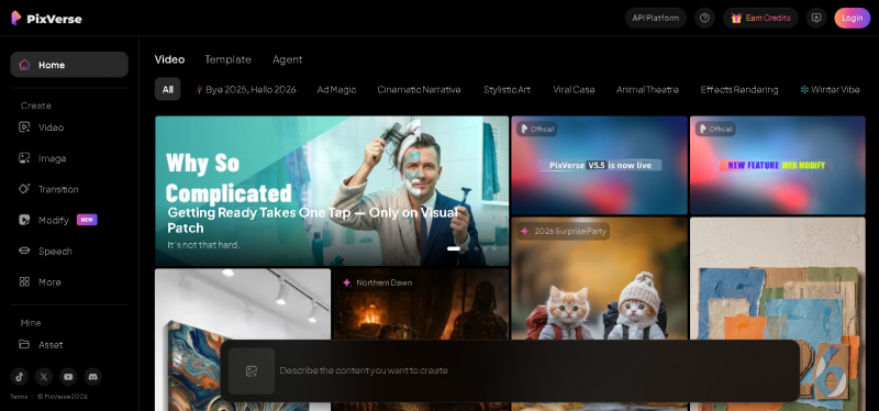 PixVerse is an AI-based video generation platform offering text-to-video and image-to-video capabilities. Written prompts or still images are converted into short video outputs using preconfigured cinematic styles, motion-driven animations, and visual effects. The platform prioritizes fast generation and strong visual impact, making it suitable for short-form media, creative previews, and rapid visual concepts without manual editing.
