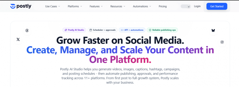 Postly provides a platform for planning, creating, publishing, and measuring social media content across multiple channels. It structures workflows around clear states, calendars, approvals, and native connections to maintain consistency as volume increases. Key elements include workspaces with roles, bulk uploads, AI assistance for content generation anchored to brand voice, and automation via API and Sheets. The platform emphasizes reliability through official APIs, security features like RBAC and encryption, and a clean interface focused on core publishing operations without added complexity.