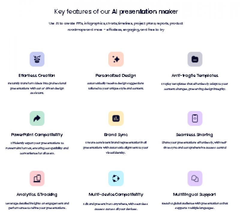 Presentations.AI is a presentation generation platform that simplifies the creation of slide decks. It allows users to transform written concepts into structured presentations supported by visual assets and layout suggestions. The platform combines content interpretation with design guidance, enabling users to edit and enhance slides before exporting them for meetings, pitches, or events. Collaboration features support shared editing, making it suitable for teams and individual presenters alike.