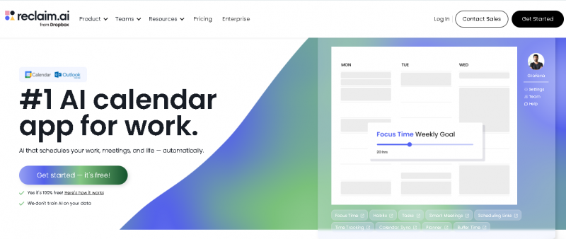 Reclaim AI is a comprehensive productivity platform that intelligently organizes your tasks, meetings, habits, and personal routines in one place. It automatically adapts your schedule as priorities shift, protects uninterrupted focus time, and ensures a balanced workflow throughout the day. By integrating seamlessly with Google Calendar and Outlook, Reclaim AI provides a unified, conflict-free view of all commitments while optimizing your time for both work and personal goals. With dynamic scheduling, habit tracking, smart meeting coordination, and analytics on time usage, it serves as an all-in-one solution for managing your calendar, improving productivity, and maintaining work-life balance.