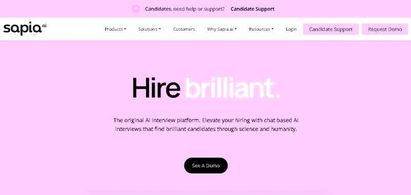 Sapia.ai allows candidates to complete text-based AI interviews on their own schedule, reducing pressure and encouraging authentic responses.