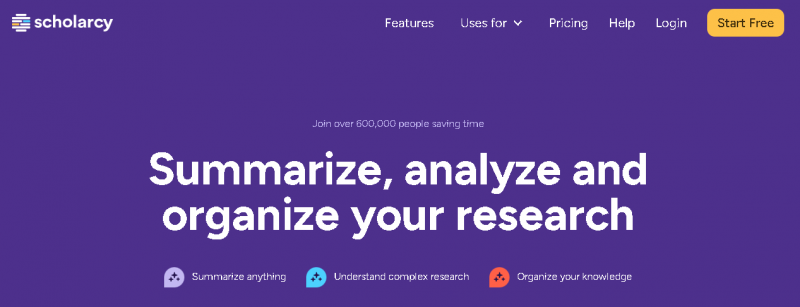 Scholarcy processes uploaded documents or web content and generates structured summaries that highlight core contributions, terminology, and references.
