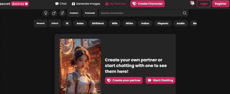 Secret Desires AI lets users design, personalize, and engage with AI companions through chat, voice, and visual content. Users can choose or customize virtual partners with specific looks, personalities, and conversational styles, then interact through dynamic chat and media generation. The service emphasizes adult-oriented companionship, roleplay, and fantasy fulfillment in a private digital environment.
