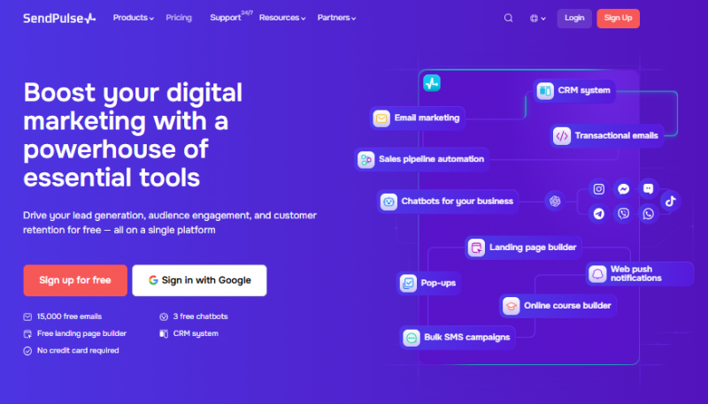SendPulse is a multi-channel marketing automation platform that supports email marketing, SMS, web push notifications, chatbots, and messaging campaigns. Unlike single-purpose tools, SendPulse helps businesses manage customer communication across multiple channels from one platform. It is commonly used for lead nurturing, promotions, and customer engagement automation.