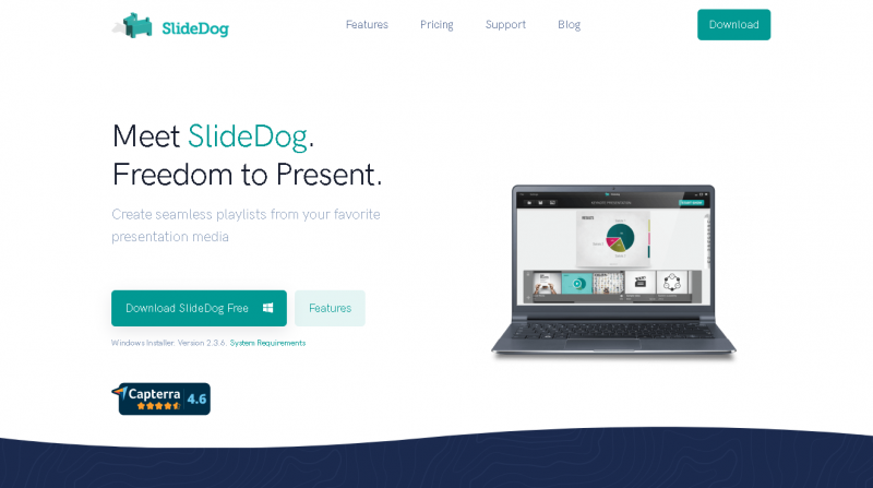 SlideDog is a Windows based presentation launcher designed to give presenters full control over mixed media content. It automatically detects installed software such as PowerPoint or Acrobat Reader to ensure all media files render correctly. Users can create playlists of slides, videos, PDFs, and other content, which SlideDog plays seamlessly while remembering the last viewed positions and supporting interactive elements.