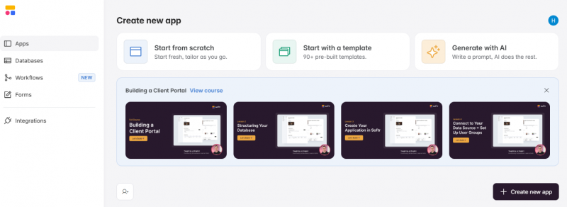 Learning curve required to master advanced features despite no-code interface; Softr recommends courses and tutorials