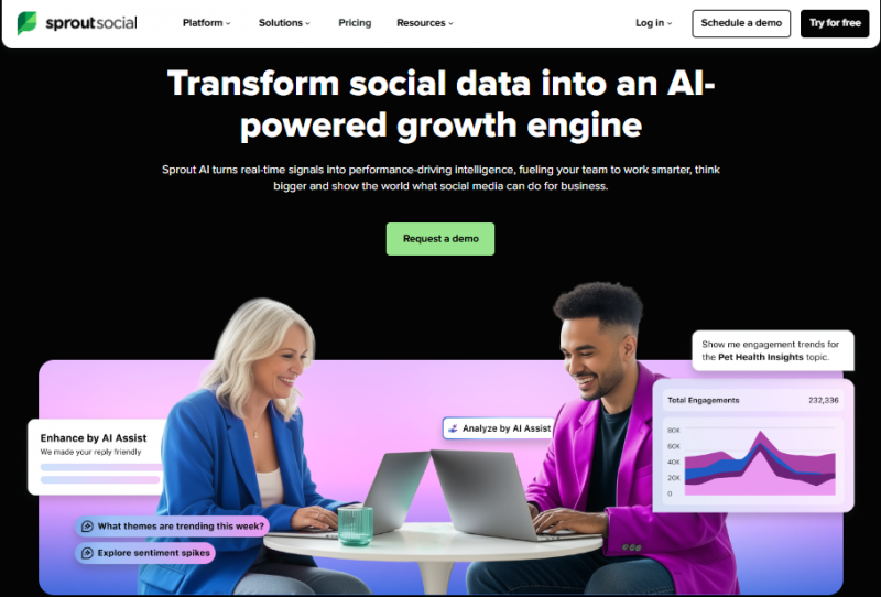 Sprout Social AI is a suite of AI-enabled tools embedded within the Sprout Social platform that helps businesses streamline social media workflows. It supports content creation, audience engagement, sentiment tracking, automated scheduling, and performance measurement — all from a central dashboard.