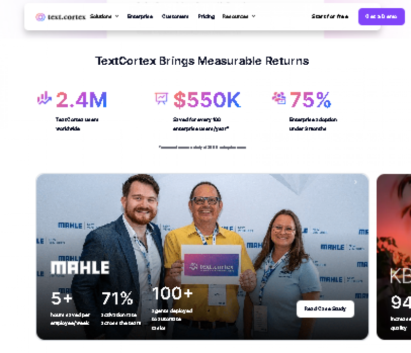 TextCortex is an AI powered writing and content productivity platform that helps users generate, rewrite, and summarize text quickly. It supports a range of writing use cases including emails, blogs, product descriptions, translations, and more through templates, knowledge bases, and AI models. The platform integrates with workflows via browser extensions and offers enterprise level deployments with privacy and team management tools. It is aimed at content creators, marketers, and businesses seeking scalable AI creativity.