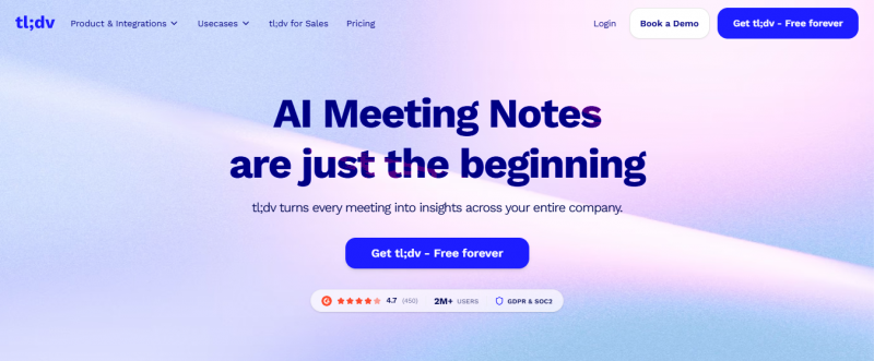 tl;dv records, transcribes, and summarizes meetings across Zoom, Google Meet, and Microsoft Teams, including slide capture. It provides high-quality video and audio recordings with automatic speaker recognition and supports transcription in over 30 languages. Users highlight moments in transcripts to generate shareable clips or combine them into Reels. Custom topic trackers monitor discussions on specific subjects. Meetings from all platforms appear in a centralized, searchable library. AI surfaces highlights, action items, and insights. Automatic recording occurs without manual intervention once connected to calendars. Integrations send outputs to CRMs, Notion, and other tools.