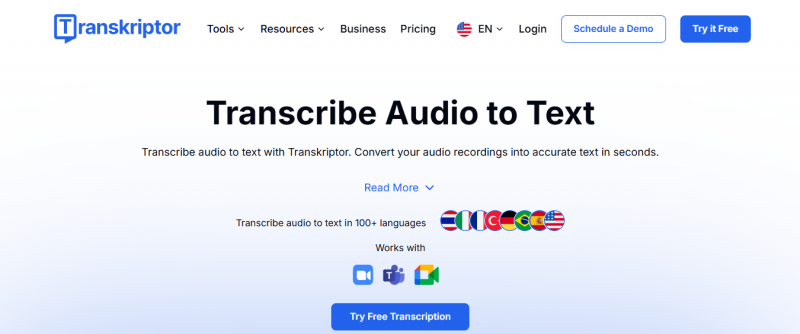 Transkriptor transcribes audio and video files into text. It processes uploaded local files or video links, identifies speakers automatically, and achieves 99%+ accuracy. Users edit transcripts, rename speakers, and export to PDF, Word, SRT, TXT, or CSV formats. The tool records screen and audio directly for live content. It generates subtitles with timestamps and speaker labels, editable in a built-in tool for SRT, TXT, or VTT export. For meetings on Zoom, Microsoft Teams, or Google Meet, it creates searchable transcripts, labels speakers, and produces summaries of key points, decisions, and action items. Transcripts store in archives. It supports over 100 languages and various file formats.