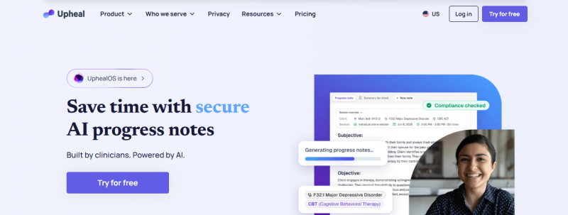 Upheal is a HIPAA-compliant platform that automates clinical documentation for mental health professionals. It generates session notes, transcripts, and treatment plans from session audio, then connects these notes session-to-session through its Golden Thread feature to track client progress. The platform accommodates flexible workflows supporting virtual sessions via its built-in telehealth