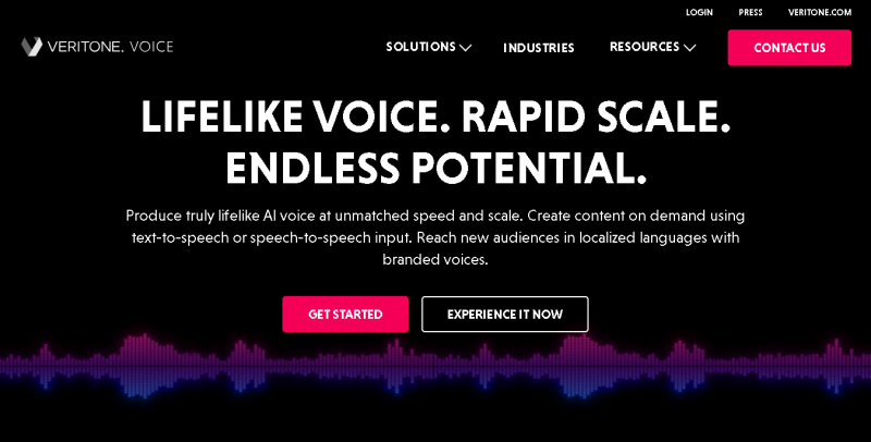 Veritone Voice is a cloud-based voice synthesis platform designed for organizations that need high-quality, scalable AI-generated speech. It allows businesses to produce audio from text or speech, create custom AI voices, automate workflows, and integrate voice capabilities into applications via an API. With a wide library of stock and premium voices across many languages, it supports localization, training content, marketing campaigns, and media production at scale.