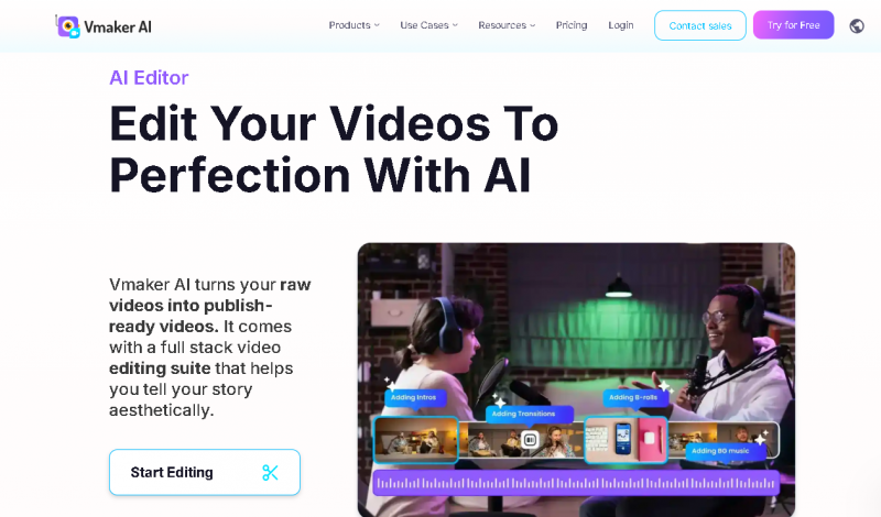 Vmaker AI includes a robust editing suite enhanced with automation. The platform assists users by automatically improving videos through context-aware enhancements while still allowing manual adjustments.