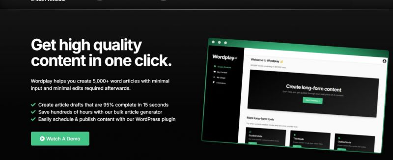 Wordplay.ai is an AI-powered long-form content generator built to simplify blog, article, and web page writing. You input a keyword, title, or outline