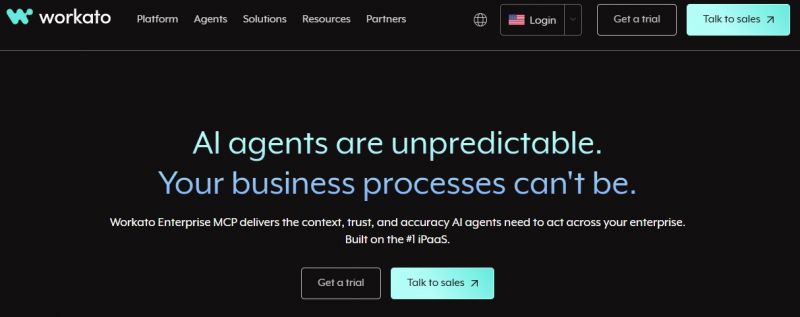 Workato is a business automation platform that helps organizations connect software systems, automate workflows, and orchestrate business processes at enterprise scale. With low-code tools, universal connectivity, and governance features, it supports teams across IT, operations, finance, HR, and sales. Pricing is customized and usage-based, making it best suited for medium to large enterprises with complex automation needs.