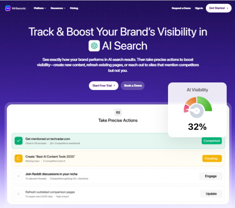 Writesonic is an AI writing and marketing assistant built to help businesses, marketers, and creators generate content for websites, ads, blogs, and social platforms. It is suited for users who need fast, scalable content creation with flexible use cases.