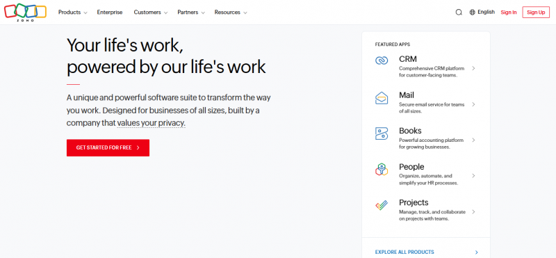 • Integration with Zoho ecosystem tools
